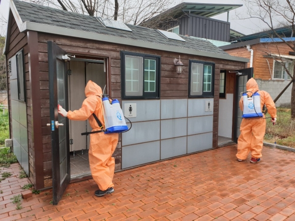 소독 활동은 감문면 각 마을에 28명의 이장님들이 관내 농협, 우체국, 파출소, 상가일대 등 다중이용시설 및 감염취약지역 중심으로 코로나-19 극복하기에 동참하기 위해 실시 한 것이다.