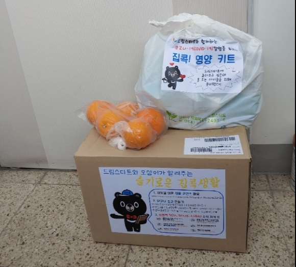 | 김천시(시장 김충섭) 드림스타트에서는 코로나19로 인한 아동들의 등교유예가 장기화되면서 돌봄 공백 결식우려가 있는 가구에 대해 마스크와 자체 제작한 영양식품키트, 지역사회에서 발굴한 기관에서 지원받은 다양한 후원물품들을 각 가구(140가구 425명)에 비대면으로 지원하고 있다.
