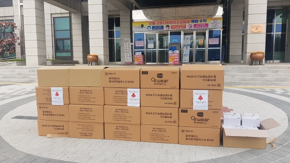 | 지난 27일 김천신협(이사장 박원효)은 김천시를 방문해 마스크 10,000장을 전달했다. 전달된 마스크는 기탁자의 뜻에 따라 코로나 19로 힘든 시기의 최전선에서 함께하고 있는 방역봉사자와 의료진에게 전달되었다.