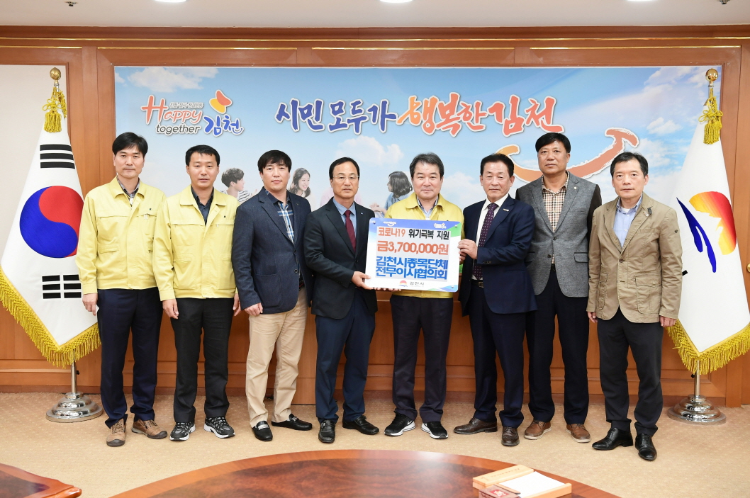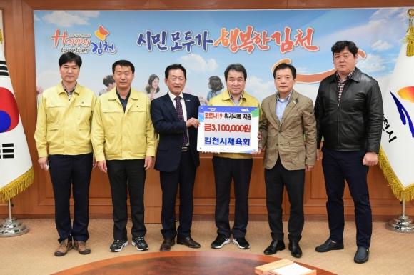 김천시체육회와 김천시종목단체전무이사협의회는 코로나19로 어려움을 겪고 있는 지역사회에 조금이나마 도움이 되고자하는 마음에서 체육인들이 함께 기부하게 되었다며 빠른 시일 내에 코로나19를 극복하고 다시 일상으로 돌아가기를 바란다고 전했다.