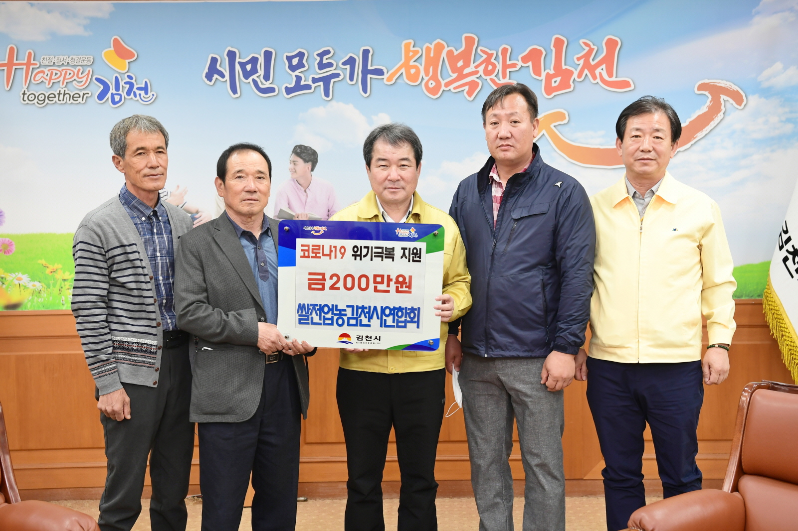 | 코로나-19로 차갑게 얼어붙은 마음을 녹이는 농업인단체의 따스한 손길이 이어지고 있다. 쌀전업농김천시연합회(회장 김재수)는 코로나19 장기화로 어려움을 겪고 있는 지역주민들을 돕기 위해 성금(2백만원)을 김천시에 기탁했다.