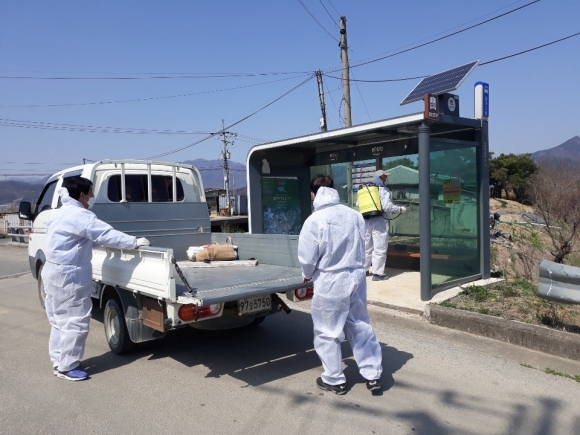 | 감천면 이장협의회(회장 천병수)는 지난 4월 2일 오전에 코로나19 바이러스 지역 확산 예방을 위하여 방역활동을 실시하였다