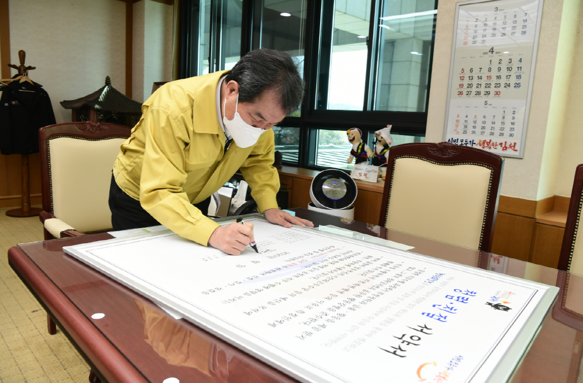 이번 캠페인은 간부 공무원이 솔선수범하여 청렴한 김천으로 나아가겠다는 취지로 청렴서약서에 서명하는 방식으로 진행하였으며, 간부공무원의 청렴 리더십 제고와 청렴한 조직문화 조성으로 시민들에게 신뢰받는 공직사회 구현을 위해 실시하였다.
