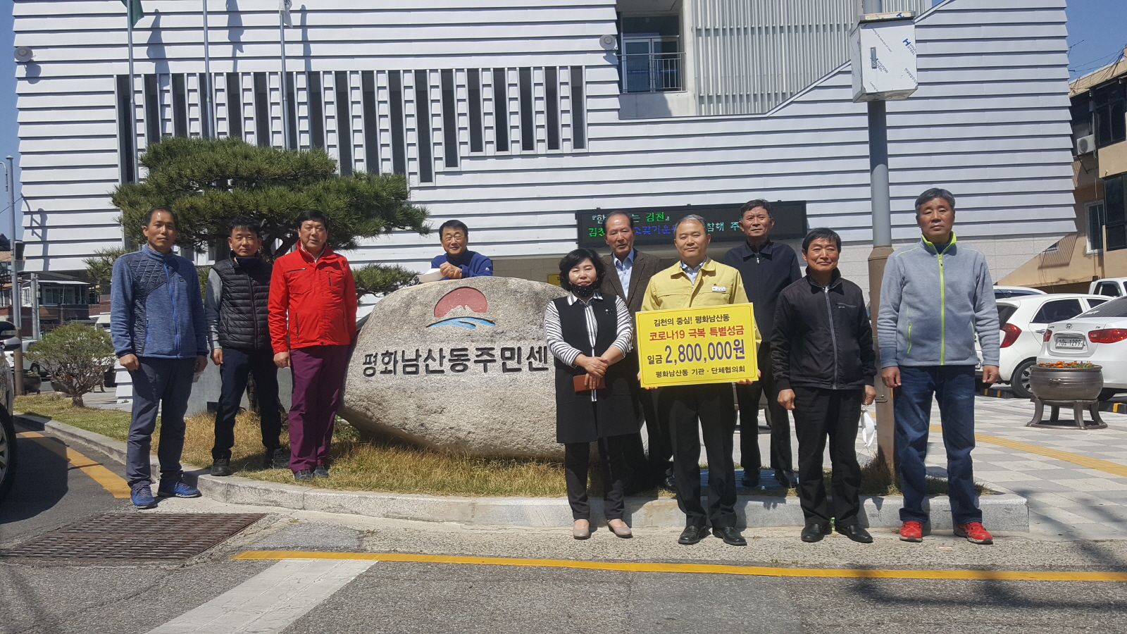 | 평화남산동(동장 양준영)에서는 6일 코로나19 사태로 어려움을 겪고 있는 주민들을 돕기 위해 평화남산동 총 10개 유관단체에서 자발적으로 모금에 참여하여 성금 280만원을 평화남산동 행정복지센터에 전달했다고 밝혔다.