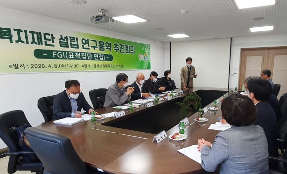 | 김천시는 지난 4월 8일 『김천복지재단』설립을 위한 추진회의 및 FGI(표적집단 면접)를 개최하였다. 김천시청에서 실시된 이날 회의는 김천시 복지재단 설립 타당성 용역업체인 대구대학교 산학협력단과 시청 해당부서 관계자들이 함께 참석한 가운데, 설문내용 검토와 실무자들의 의견을 수렴하는 자리로 진행되었으며, 이어서 오후에는 민간기관, 단체 및 학계 민간분야 전문가들이 참석한 간담회를 연속 개최했다.