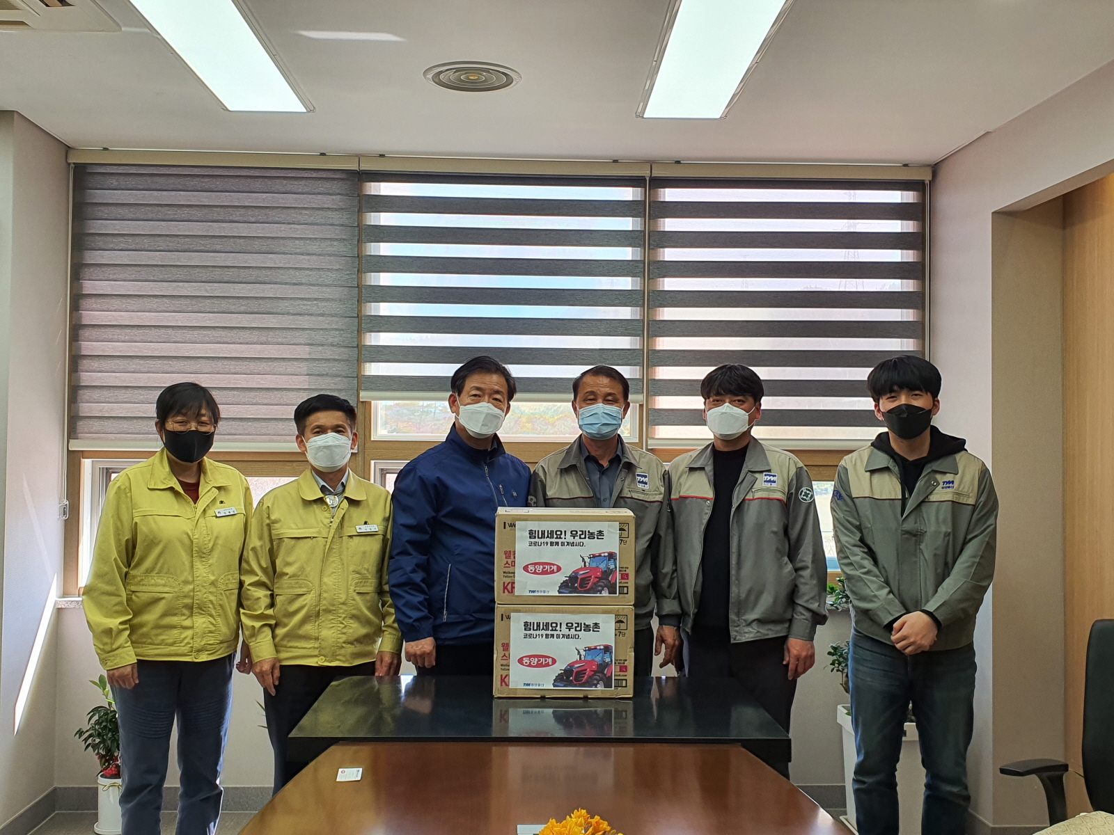 | 동양기계 경북지점에서는 지난 14일 김천시농업기술센터를 방문하여 코로나19로 힘들어하는 관내농업인들에게 도움이 되고자 방역마스크 400매를 전달했다.