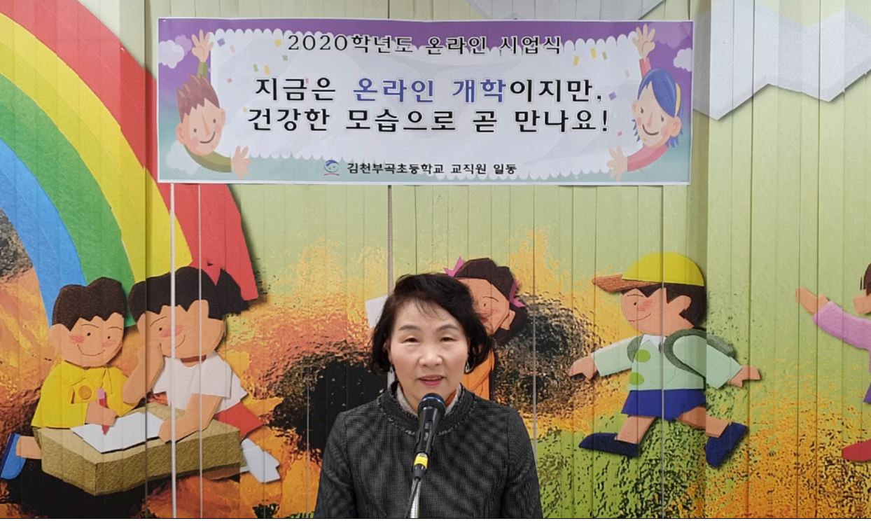 1교시에 진행한 온라인 시업식은 당초 실시간 온라인 방송으로 진행하려고 했으나, 전국 동시 온라인 개학으로 인한 서버 접속의 어려움과 혼란이 예상되어 부득이하게 녹화 촬영분을 방영하게 되었다. 이날 4~6학년을 대상으로 온라인 시업식을 우선 실시하였으며, 4월 20일(월) 2~3학년 온라인 시업식, 1학년 온라인 입학식을 순차적으로 진행할 예정이다. 본교 김경숙 교장선생님은 “학생들이 없는 학교는 상상해본 적이 없었는데 사상 첫 온라인 개학으로 인해 시업식과 입학식을 학생 없이 온라인으로 진행하게 된 것이 무척 아쉽고 안타깝습니다. 하지만, 모두의 안전과 건강을 위해서 피할 수 없는 일이라면 꿋꿋이 참고 이겨내야 한다고 생각합니다. 우리 김천부곡 꿈동이들도 모두의 바람처럼 이 힘든 시기를 굳건히 잘 이겨내리라 믿습니다. 비록 지금은 온라인 개학과 입학이지만 건강한 모습으로 곧 만났으면 합니다”라고 온라인 행사의 취지와 당부의 말씀을 남겼다.