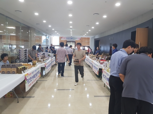| △ 혁신도시, 지역발전에 앞장서다 혁신도시 이전 공공기관들도 김천시와 함께 지역발전에 힘을 보태고 있다. 이들 공공기관들은 김천시가 도농복합 도시임을 감안해 매년 설과 추석에 농특산물 직거래장터 개설에 적극 동참하고 있다. 또한 한국도로공사와 한국전력기술, 농림축산검역본부와 한국교통안전공단에서는 지역에서 생산한 농식품 팔아주기를 위한 ‘혁신도시 어울림 직거래 장터’가 연 2회 이상 열려 이전기관과 지역주민 간 상생발전을 도모했다. 직거래장터는 김천지역에서 생산, 가공되는 농특산물을 판매함으로써 지역 농민들에게는 새로운 판로를 개척하고 공공기관 임직원들에게는 안전하고 신선한 먹거리를 유통경로 없이 저렴한 가격에 구입할 수 있는 기회를 제공한다. 매년 진행되는 직거래장터는 그동안의 신뢰를 바탕으로 구매가 지속적으로 늘어나고 있다. 이러한 신뢰는 공공기관들의 지역 상생협력사업으로 이어졌다. 또한, 공공기관들은 지역 마을들과 자매결연을 맺는 등 다양한 사업들을 진행하고 있다.