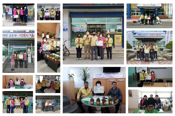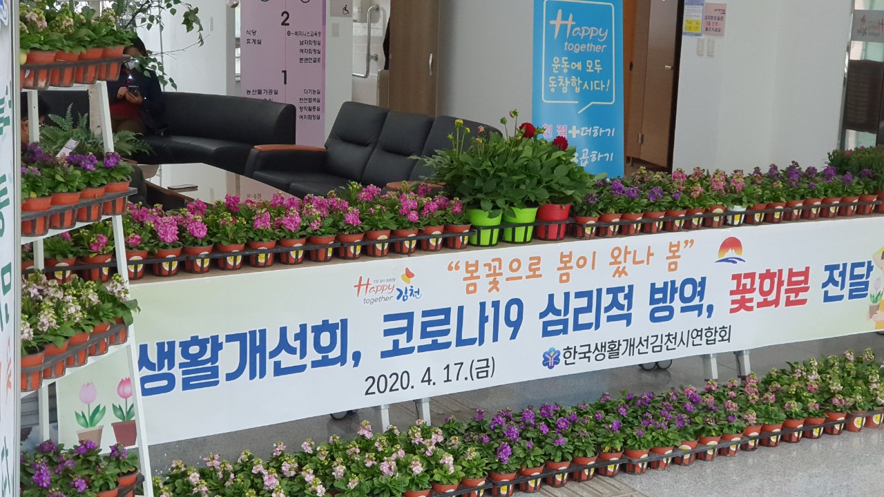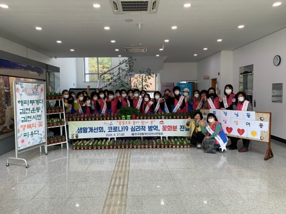 개인 위생수칙을 철저히 준수하며 만들어진 봄꽃(스토크, 다알리아, 미니카네이션) 화분 300개는 코로나19 지역사회 감염 확산 방지와 산불 예방 근무로 주말도 없이 수고하고 있는 공무원과 코로나19로 인해 심리적으로 위축되어 있는 이웃에게 위로와 격려를 보내기 위한 것으로, 응원의 메세지가 적힌 문구와 함께 당일 각 읍·면·동사무소와 도움이 필요로 하는 이웃에게 전달되기 시작했다. 평소에도 생활개선회는 김천시 자원봉사센터에서 추진하는 필터 교체 마스크 만들기 봉사에 5회 참석하여 재봉틀, 손바느질, 제단과 보조 등 본인의 역량에 맞게 마스크 3,000장 만들기에 힘을 보탰으며, 코로나19로 인해 경제도 심리도 모두 침체되어 있는 시기에 작은 희망의 밀알이 되고자 묵묵히 노력해오고 있다.