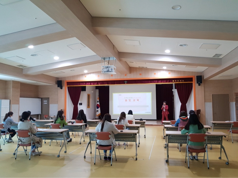 | 율빛유치원(원장 유정희)은 지난 20일 전 교원을 대상으로 코로나19 위기상황에서 내실있는 교육과정 운영과 위기에 대처할 수 있는 능력 함양을 위하여 원내 자율 연수를 실시하였다.