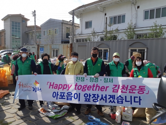 이날 이정하 아포읍장은 “코로나 19 바이러스로 모두가 어렵고 힘든 시기와 본격적인 농번기를 앞두고 영농준비에 바쁜 나날이 이어 지는 가운데 새마을 남·여지도자분들이 아포읍과 지역사회를 위한 해피투게더 청결 김천 운동에 적극 동참해주시어 정말 감사드리며, 항상 깨끗하고 아름답고 살기좋은 아포읍의 환경이 조성될 수 있도록 해주는 것은 새마을 남녀 지도자분들의 열정적인 봉사 덕분”이라고 격려 하며 앞으로도 아포읍과 지역 발전을 위하여 많은 활동을 해 줄 것을 당부하면서 그 고마음을 나타냈다.