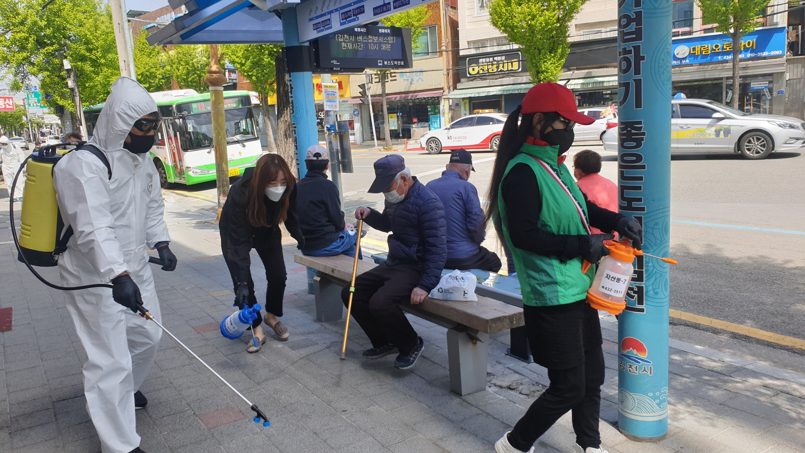 | 자산동 통장협의회(최상동)와 새마을부녀회(권오현)에서는 제21대 국회의원선거로 인하여 조금은 소홀해진 ‘코로나-19’방역활동을 지난 4월 22일 모암동 및 감호동 일원에 소재한 버스승강장, 금융기관, 다중이용시설인 미용실 등을 순회하며 관내 자체방역활동을 실시했다.