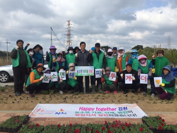 | 지난 23일 농소면 새마을남녀지도자협의회(회장 이상백·박성자)는 ‘Happy together 김천 운동’일환으로‘봄꽃심기’행사를 실시했다.