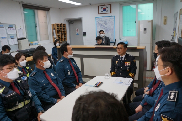 | 박건찬 경북지방경찰청장은 4월 23일, 김천경찰서 역전 파출소를 방문하여 현장직원들과 만남의 시간을 가졌다.