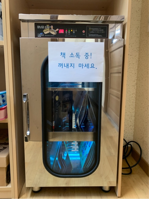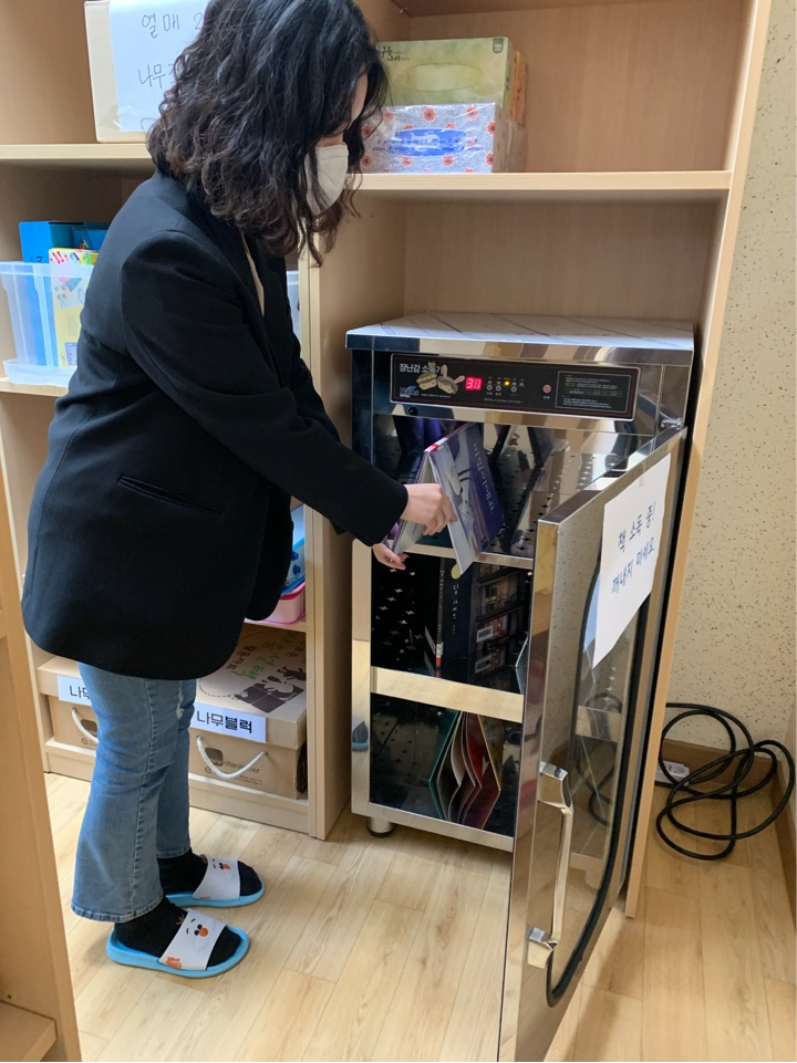 해당 글에는 대출 가능 도서 목록과 도서 대출 방법 및 안내사항을 기재하였고 댓글로 유아 당 2권 씩 도서를 예약할 수 있다. 예약한 도서는 매주 금요일에 유치원으로 직접 찾아와 빌려가는 워킹스루 (walking thru)방식으로 진행하며, 대출기간은 7일이다. 또한, 반납 된 도서의 교차 감염을 방지하기 위해 반납된 도서를 적외선 소독기에 소독한 후 다시 대출 가능한 도서로 활용하고 있다.