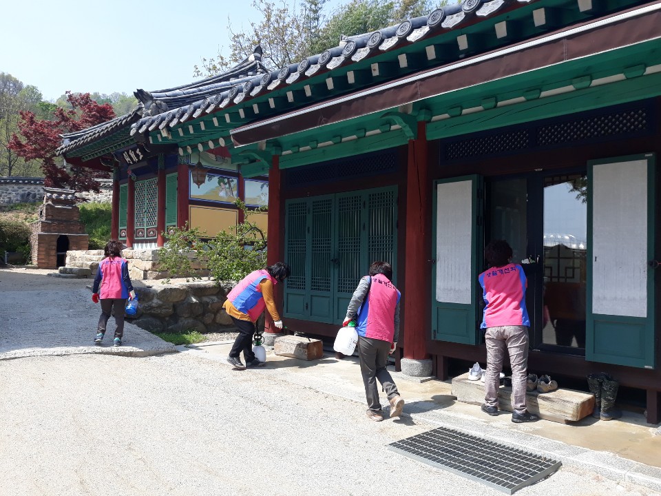 지난 25일 생활개선회 회원 8명이 참여해 코로나19 사회적거리두기 완화로 인해 그동안 중단되었던 교회 예배 및 법회 등이 주말을 맞아 재개됨에 따라 종교시설 및 복지시설 등 취약시설에 대해 집중적으로 방역소독을 실시했다.