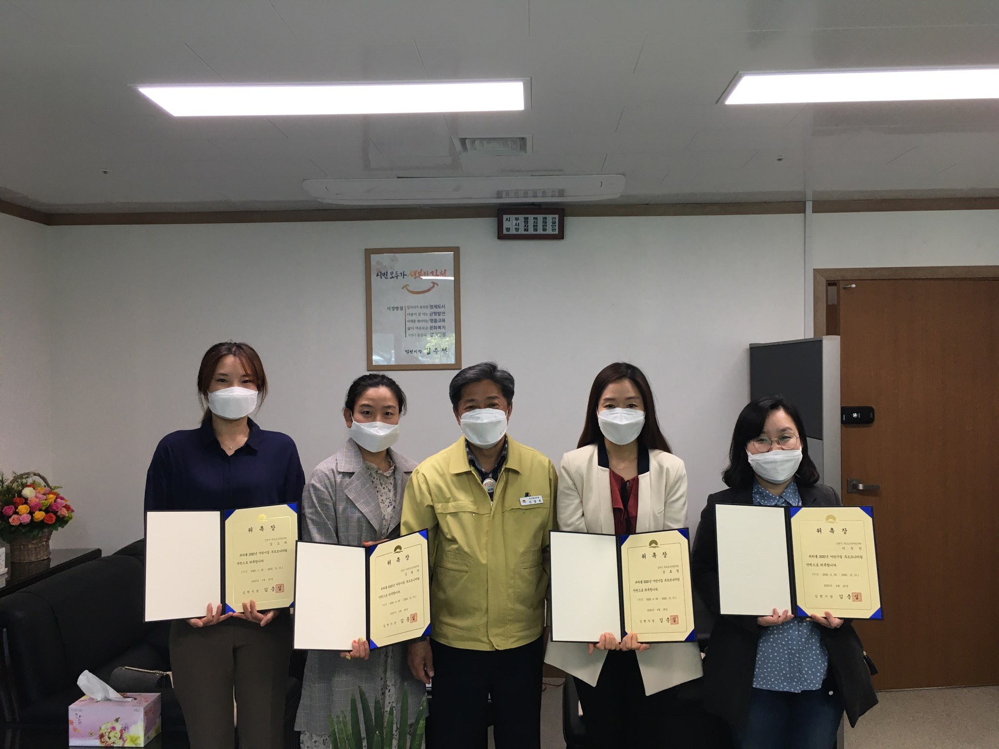 | 김천시(시장 김충섭)는 4월 29일(수) 김천시청 복지환경 국장실에서 ‘2020년 어린이집 부모모니터링단’위촉식을 가졌다.