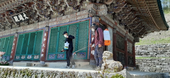 증산면 자율방범대 청암사 등 관내 사찰 5개소 방역 실시