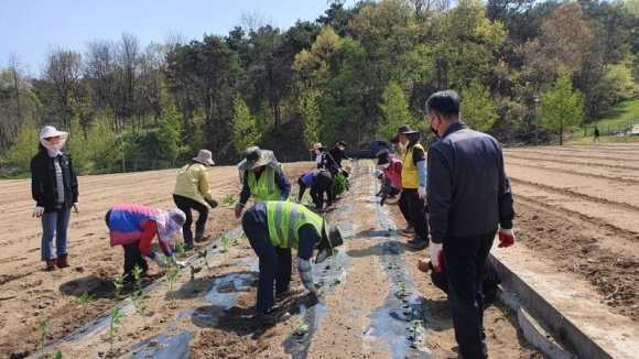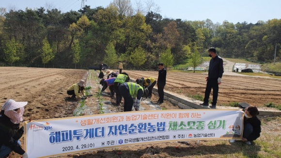 | 한국생활개선김천시연합회(회장 김경자)는 4월 29일, 김천 시민의식 함양을 위한 해피투게더 운동의 일환으로, 농촌지도과의 후원에 힘입어 시험 공동과제포 일부에 상추, 브로콜리, 양배추, 케일 등 쌈채소류 1,500여 본을 식재했다.