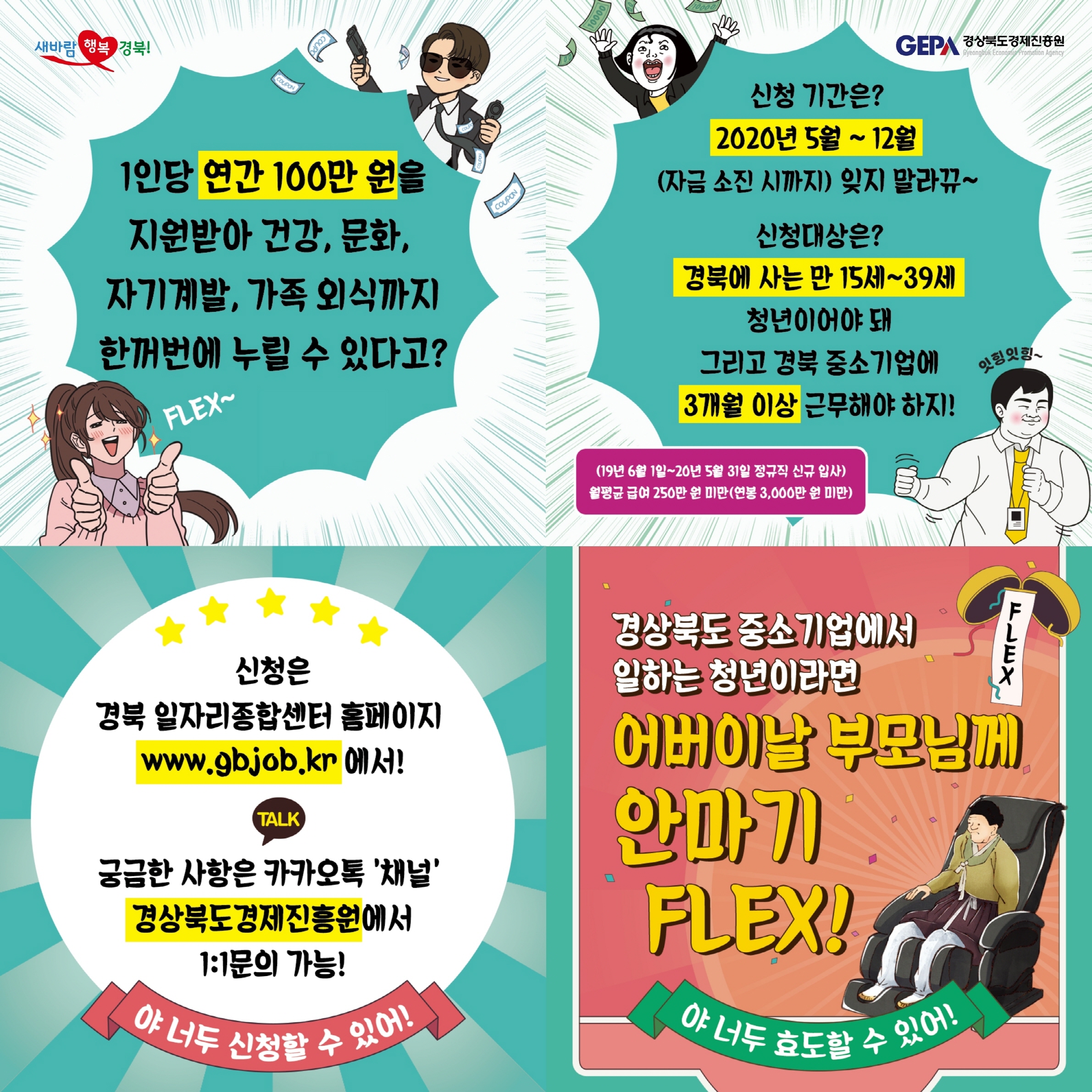 - 청년근로자 1,830명에게 100만원 복지카드 지원 - - 5월 6일부터 경북일자리종합센터에서 접수... 선착순 선정 -