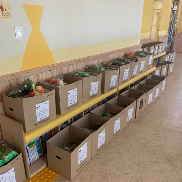 농소유치원은 김천 혁신도시 하나로 마트와 협력하여 각 가정으로 식재료 꾸러미를 배달하며, 식재료 구성은 곡류와 육류, 청과류 등 5대 영양소를 고루 섭취할 수 있도록 하였다.