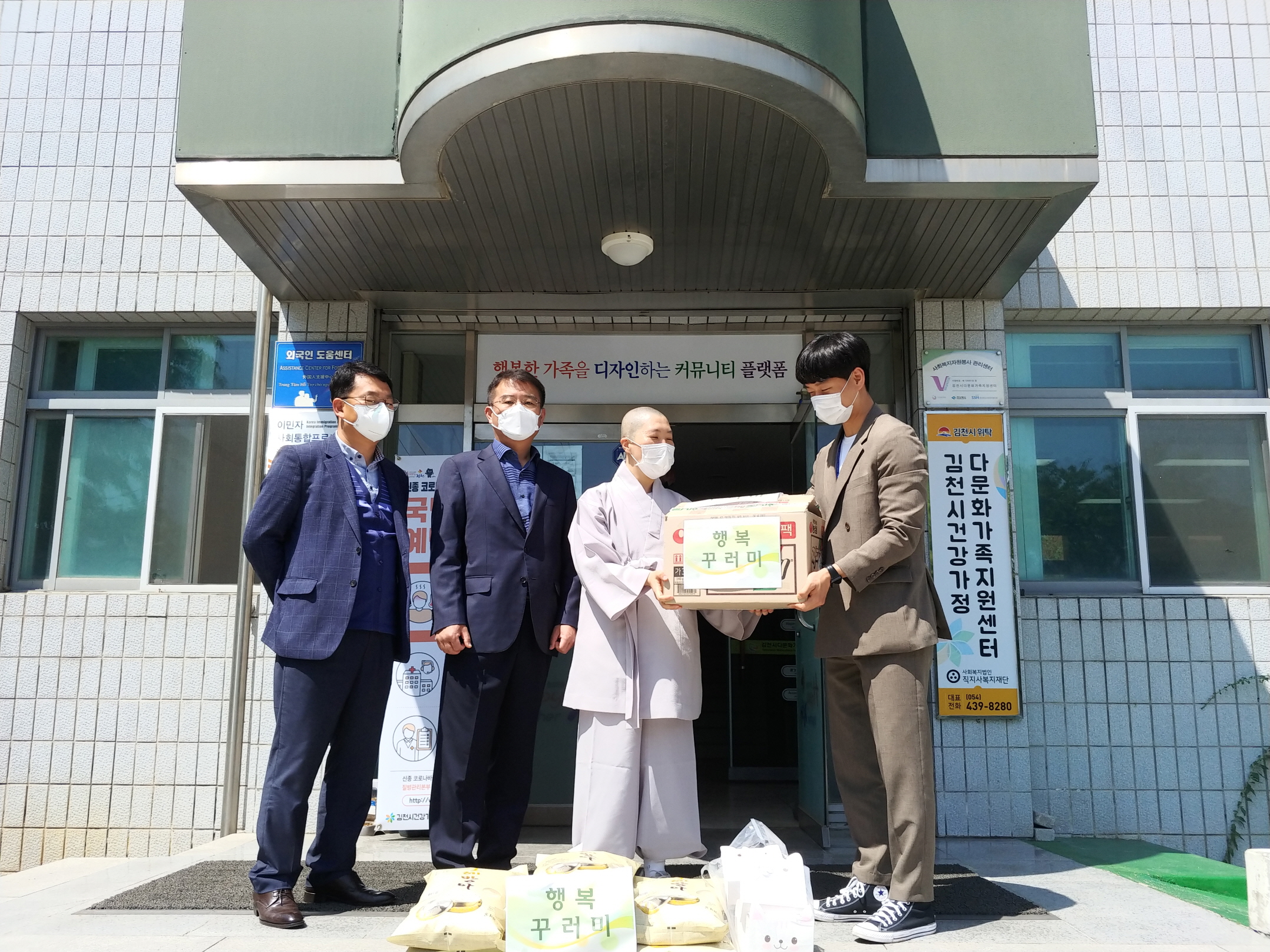 | 김천경찰서(서장 우지완)는 지난 6일(수) 김천시건강가정‧다문화가족지원센터와 협조하여 코로나19 장기화로 인하여 경제적으로 어렵고 소외된 김천시 거주 다문화가정 10가구를 선정, 코로나19 예방수칙 홍보 및 생활필수품(쌀,라면)과 호신용경보기를 전달했다.