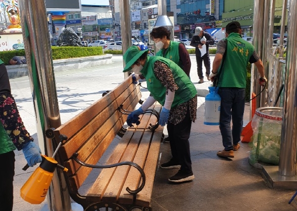 | 평화남산동 새마을협의회 (회장 신광식,김이경)는 생활 방역으로 전환됨에 따라 자칫 소홀해질 염려가 있어 시내 중심지인 버스 승강장 및 상가 주변에 방역 활동을 실시 하였다.