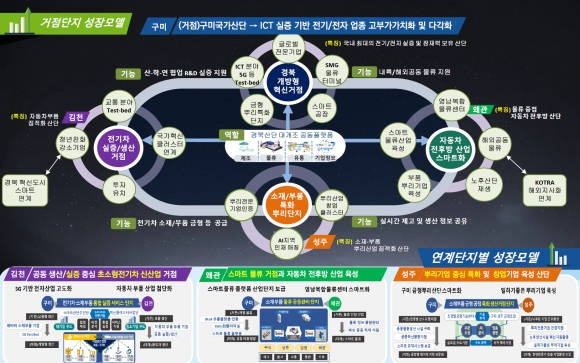 또한 구미와 김천을 연결해 전기차 실증 및 공동 생산, 구미와 왜관은 구미 SMG 물류터미널과 김천 물류단지를 연결한 스마트 물류 거점단지 조성, 구미와 성주는 구미 금형특화단지와 성주 뿌리산업을 연계한 경북 서부권 스마트 뿌리산업 벨트를 조성해 나간다는 계획이다