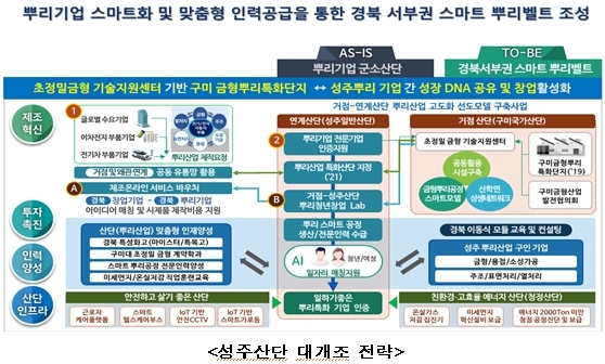 성주 산단은 뿌리기업과 거점산단의 금형 뿌리 특화단지를 연계하여 경북 서부권 뿌리벨트 형성을 통한 기반산업 고도화의 강점을 보유하고 있다.
