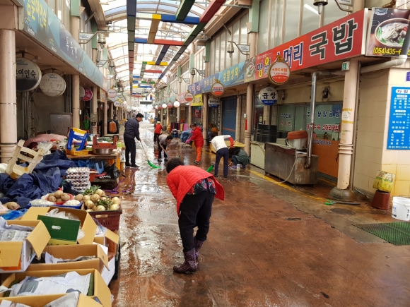 코로나19 극복 김천 평화‧황금시장, 손님맞이 대청소 실시