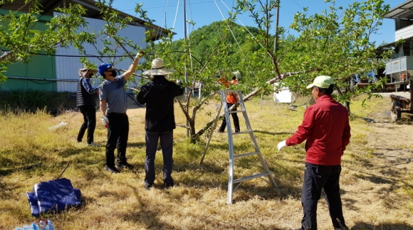 | 지례면(면장 김종국)은 지난 8월 농번기를 맞아 코로나19로 인해 일손부족으로 어려움을 겪는 지역 농가를 방문, 복숭아 알솎기 작업을 가졌다.