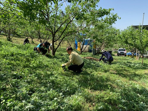 무더운 날씨에도 불구하고 일손돕기에 참여한 직원들은 6,600㎡ 면적의 과수원 잡초 제거와 풀베기 작업에 구슬땀을 흘렸다.