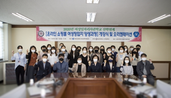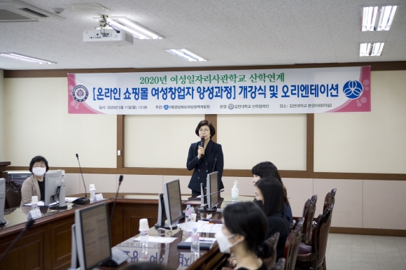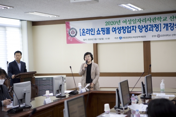 | 김천대학교(총장 윤옥현) 산학협력단(단장 백열선)은 5월 11(월) 오후 1시 김천대 대회의실에서 대학교수, (재)경북여성정책개발원(원장 최미화) 관계자 및 교육생이 참석한 가운데 2020년 여성일자리사관학교 산학연계 ’온라인 쇼핑몰 여성창업자 양성과정‘ 개강식 및 오리엔테이션을 개최했다.