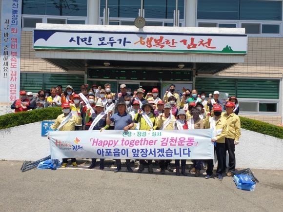 | 아포읍은 지난 11일 청결하고 쾌적한 환경조성을 위하여 공무원과 각 단체가 참여하는 「Happy together 김천」운동 청결활동을 대대적으로 펼쳤다.