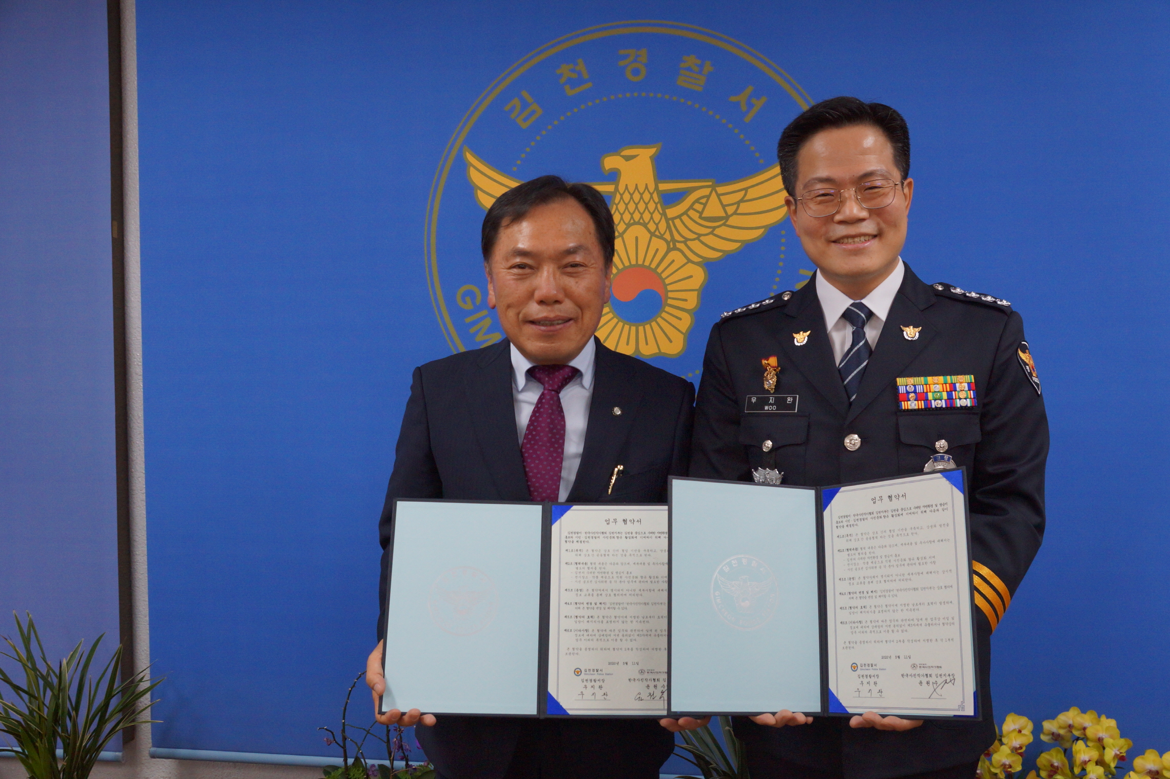 | 김천경찰서(서장 우지완)는 지난 5월 11일(월) 2층 서장실에서 사진작가협회 김천지부와 협약을 체결하였다.