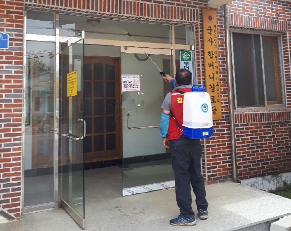 | 아포읍에서는 잠정 운영 중단되었던 아포읍 관내 모든 경로당에 대해 다가오는 5. 18.(월)부터 개방하기로 함에 따라 코로나19 확산 예방에 대비하기 위해 지난 14일 관내 40개소 경로당을 방문하여 방역을 실시하였다. 아울러, 각 경로당에 어르신들이 사용할 방역물품으로 손소독제, 손세정제, 손소독 물티슈를 전달했다.