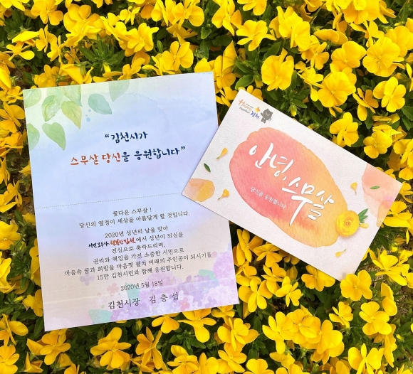 | 김천시(시장 김충섭)는 제48회 성년의 날(5월 18일)을 맞아 성년이 되는 2001년생 청소년 1,300여명에게 축하 서한문을 보냈다.