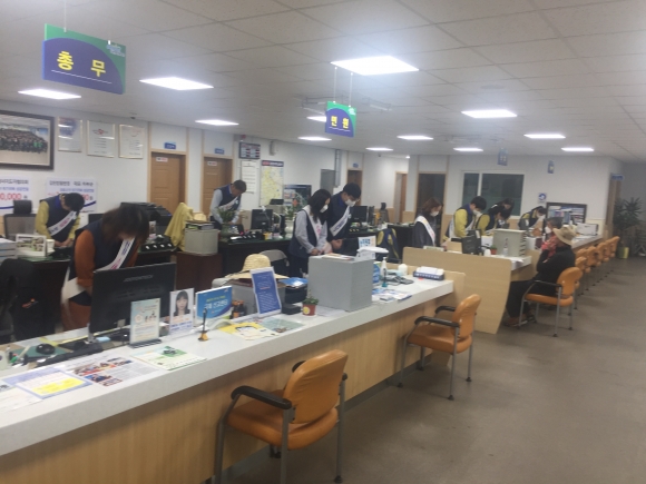 ▲친절한 눈 맞춤으로 민원인에게 미소로 대하기 ▲민원인에게 ‘안녕하십니까! 어서오십시오! 무엇을 도와드릴까요?’3가지 인사하기 ▲친절, 서비스 헌장 및 친절교육 내용 낭독하기 ▲‘주민의 목소리 우편함’운영 등 지역주민에게 보다 나은 서비스를 제공하기 위하여 노력하고 있다.