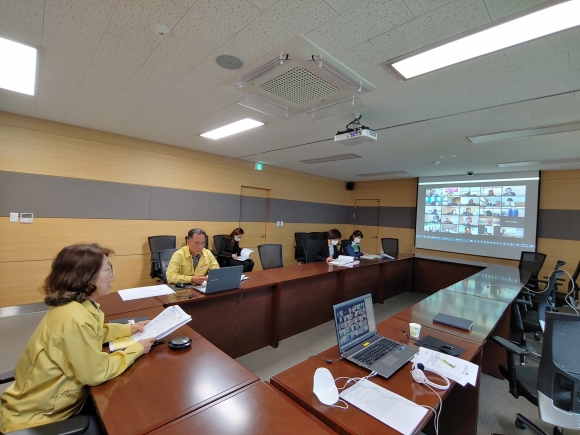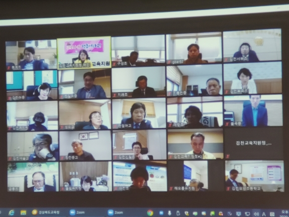 | 경상북도김천교육지원청(교육장 마숙자)는 지난 19일 관내 유‧초‧중‧고‧각종학교 교(원)장과 화상시스템을 연결하여 등교수업 준비 상황을 공유하는 화상회의를 실시하였다.