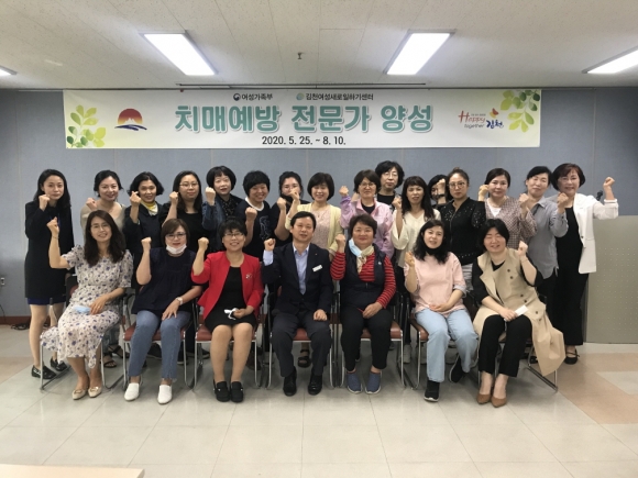 | 김천시 평생교육원에서 운영하는 여성새로일하기센터에서 지난 5월 25일 교육생 20명이 참석한 가운데 직업교육 훈련 프로그램인「치매예방 전문가 양성」과정 개강식을 개최하였다. 여성새로일하기센터는 2020년 여성가족부 공모사업으로 선정된 총4개 과정 중「치매예방 전문가 양성」과정을 우선 개강하였으며, 5. 27(수)에는「그래픽 디자인 전문가 양성」과정이 개강 예정이고, 하반기에는「Auto CAD 실무자 양성」과정, 「SNS 여성창업 성공전략」을 개강할 계획이다.