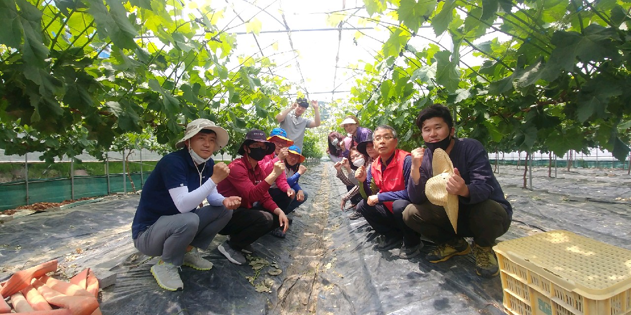 | 김천시 농식품유통과 직원들은 26일 코로나 19로 구인에 어려움을 겪고 있는 대항면 덕전리 소재 포도 농가를 찾아 농촌 일손돕기 활동을 실시하였다.