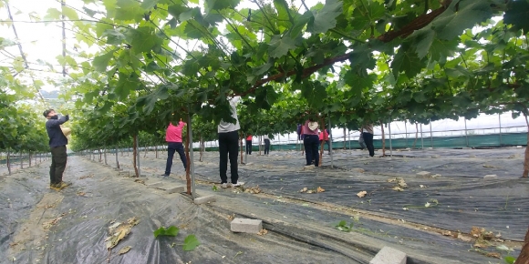 전직원 대항면 덕전리 포도농가 순따기 작업