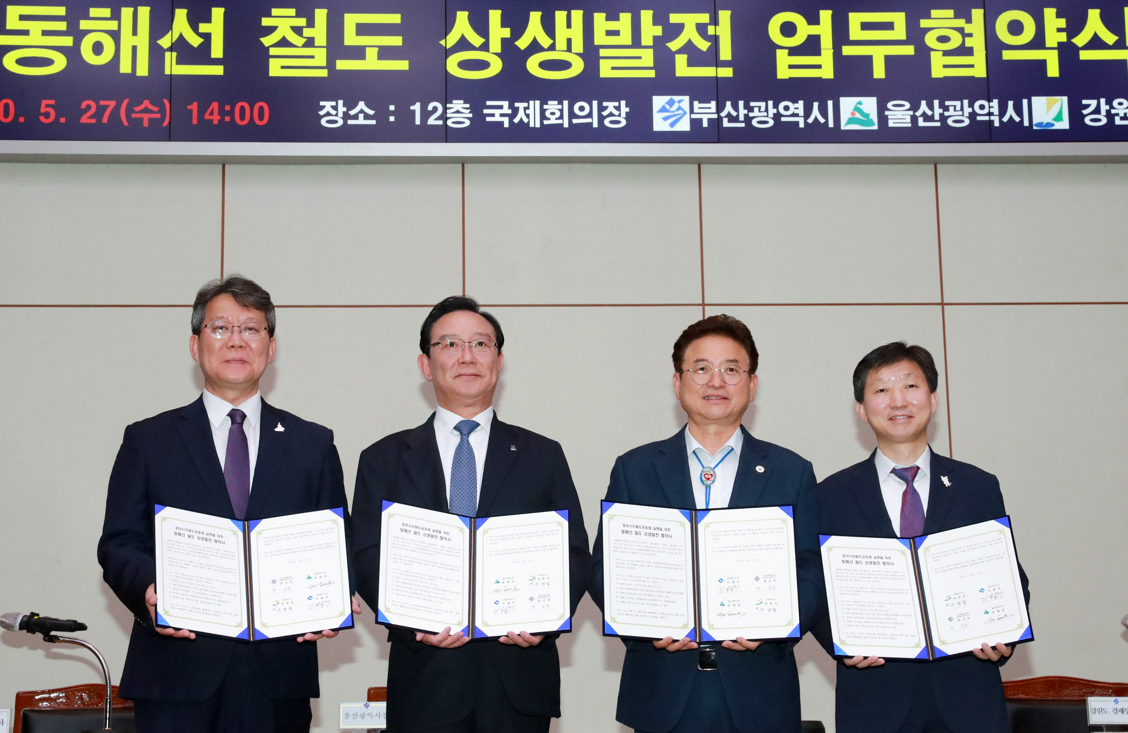 - 경상북도․부산시․울산시․강원도 4개 시․도 동해선 상생협약 체결 - - 동해선 복선전철화, 동해선 전철화 조기개통 등 공동협력 -