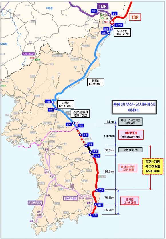 동해선을 유라시아 철도네트워크 핵심교통망으로 발전 시킨다!