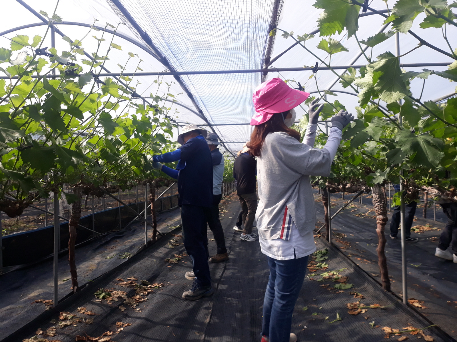 어모면의 한 포도 재배 농가를 방문하여 서툰 솜씨지만 포도 순따기 작업을 도우며 우리 농촌의 힘든 현실에 대해 다 같이 공감하는 시간을 가졌다.