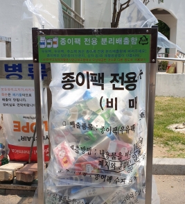 배부된 전용 수거봉투에는 종이팩의 내용물은 비우고 물로 헹군 후 말려서 폐지와 혼합되지 않게 배출해야 하며, 수거봉투는 필름류로 제작되어 일정기간 재사용도 가능하다.