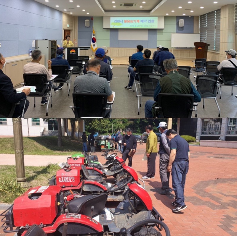 | 김천시농업기술센터는 농기계 임대사업소에서 사용한 농기계 중 내구연한이 경과하여 불용 처리된 농기계를 희망하는 지역농업인들에게 공개 경매를 지난 28일 진행하였다.
