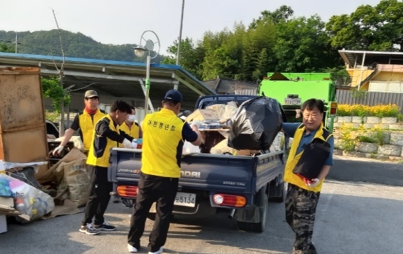 | 어모면에서는 “쓰레기 없는 행복 마을”만들기에 지난 30일 오전 6시에 아천청년회가 앞장서 주택가 환경정화 및 투기단속 활동을 벌였다.