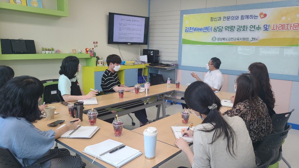 | 경상북도김천교육지원청(교육장 마숙자) Wee센터에서는 6월 3일(수) 김천교육지원청Wee센터 소통방에서 Wee센터 전문상담인력들을 대상으로 정신과 자문의 연수를 실시하였다.