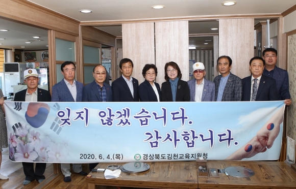 | 경상북도김천교육지원청(교육장 마숙자)은 6월 호국보훈의 달을 맞이하여 6월 4일 목요일 12시 오찬 간담회를 개최하였다.